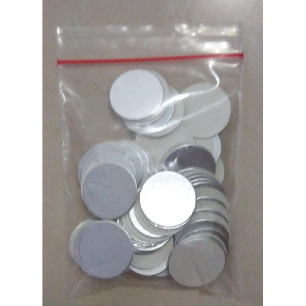 Ready StockAlumunium foil seal untuk segel botol PET ukuran 20 mm atau 2 cmKetebalan 0.6 mm1 Pack = 100 pcsAlumunium foil nya sudah di lapisi karton jadi tidak perlu lagi menggunakan kertas ketika memanaskan dengan setrika atau mesin induksi.Cara penggunaan nya :arahkan bagian alumunium foil nya ke mulut botol lalu panaskan bagian karton nya dengan setrika atau mesin induksi, apabila sudah menempel maka karton akan terlepas dari alumunium foil.Tersedia juga ukuran :24 mm / 2.4 cm28 mm / 2.8 cm38 mm / 3.8 cm44 mm / 4.4 cm52 mm / 5.2 cm61 mm / 6.1 cm65 mm / 6.5 cm87 mm / 8.7 cmBarang yang telah di beli tidak dapat di kembalikan.Sebelum mengirim kami akan memastikan terlebih dahulu barang sudah terbungkus dengan rapih.Kerusakan paket / kehilangan yang di sebabkan oleh ekspedisi / kurir bukanlah tanggung jawab se