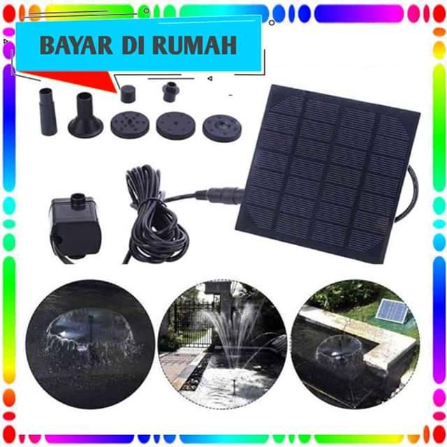Barang-barang yang Anda dapat dalam kotak produk:1 x Pump1 x Solar Panel1 x Pump AccessoriesAir mancur kolam ini juga dapat menyala secara otomatis saat solar panel terkenal matahari. Sehingga Anda tidak perlu repot menyalakan dan mematikan pompa air.Anda tidak perlu repot memikirkan penggunaan listrik untuk menyalakan air mancur ini karena menggunakan tenaga listrik yang gratis dan juga ramah lingkungan.Pompa air ini dapat menghasilkan tekanan air sebesar 150 liter per jam. Sangat kuat untuk menghasilkan tekanan air mancur yang tinggi.Air Mancur untuk ditaruh pada kolam di rumah atau di taman Anda. Air ditenagai menggunakan matahari sehingga tidak boros listrik dan air mancur dapat menyala secara terus menurus selama siang hari. Tenaga pompa mencapai 150 liter per