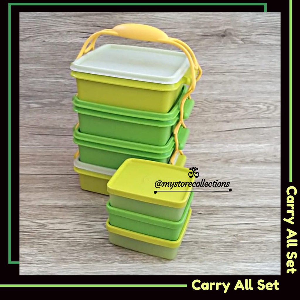 Carry All set Aneka Warna ( Rantang )Rantang Ukuran: kecil @900ml / 16.4 x 16.4 x 6 cmBesar @1,8 L / 16.4 x 16.4 x 10,5 cmTraveling dengan keluarga atau kerabat di saat liburan memang menyenangkan. Tentunya, momen ini akan lebih istimewa dengan membawa bekal favorit untuk disantap bersama. Aneka Rantang, wadah bekal susun empat dari Tupperware ini sangat praktis dan efisien untuk menempatkan berbagai macam menu. Wadah ini memang #PasBuatGayaLoe banget dengan berbagai fitur inovatifnya yaitu:Seal yang mudah untuk dibuka maupun ditutup, namun tetap ketat udara dan cairan.Lekukan seal serta bagian bawah base didesain agar pas dan kokoh saat ditumpuk (stackable)Dilengkapi cariolier agar semakin mudah dan praktis untuk menjinjing bekal Anda. Cariolier juga lentur, sehingga mudah saat memasang atau melepaskan cariolier dengan kuping base. Diameter cariolier tidak terlalu besar, disesuaikan dengan genggaman agar nyaman saat dibawa.Aneka Rantang juga bisa digunakan untuk membawa bekal sehari-hari karena terdiri dari 4 wadah yang bisa digunakan sendiri-sendiri.NB: MOHON TANYAKAN KETERSEDIAAN BARANG TERLEBIH D