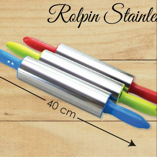 rolpin stainles diameter keseluruhan 40cmdiameter gilasan 20cmberfungsi untuk gilas adonan kuepegangan bahan plastikroling bahan stainleswarna dikirim random sesuai persediaan yang ada#alat baking murah#anekacetakan#rolpin#rolpinstai