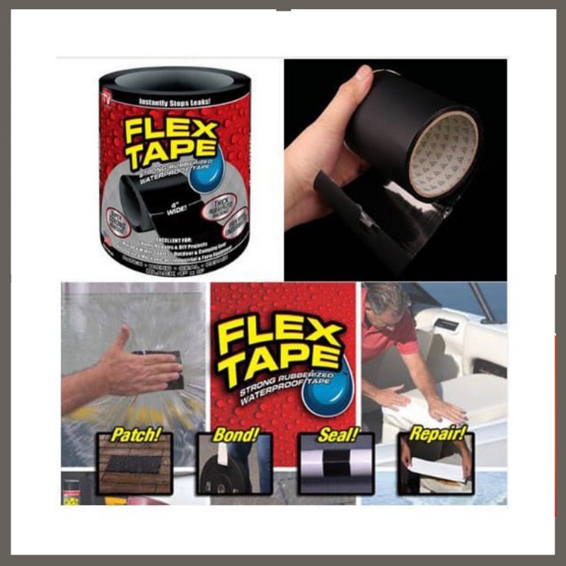 FLAX TAPE Lakban Khusus Anti Bocor Flex Tape Anti Leak 10 x 152 cmFlex TapeDengan lakban ini, peralatan seperti ember, kolam portable, kebocoran pipa, dll dapat teratasi dengan cepat. Cukup dengan melilitkan lakban khusus ini, maka seluruh peralatan Anda yang bocor dapat dipakai kembali.Strong ResistantResistanti yang sangat kuat sehingga mencegah kebocoran dapat terulang setelah pemakaian plester khusus ini.UsefulAnda dapat menggunakan lakban ini pada peralatan yang bocor ataupun memiliki lubang, Anda dapat memastikan penggunaan yang sesuai untuk peralatan Anda dengan dimensi penggunaan lakban