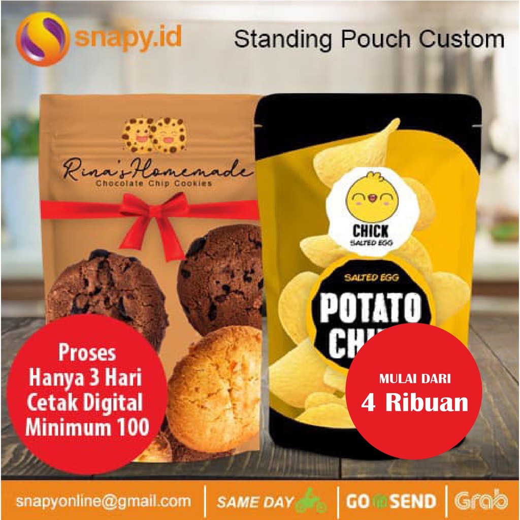 PENTING! apabila anda ingin menaikan usaha agar lebih dikenal pelanggan dan terlihat baguskini tersedia dalam jumlah kecil cetak digital dan cepat tidak perlu tunggu berminggu dan dalam jumlah besar segera dipesan dan sampaikan pesan anda kepada pelanggan tersayang Model Standing Pouch + Zipper- Ukuran 14 x 23 cm - setara 500gr gula 250gr kopi- Bahan Paper foil - Cetak : Depan + Belakang Warna : Full CMYK- Proses Pembuatan 3 hari- Minimal Order 100- Tebal 90mikron- Print UVUKURAN :- Ukuran 13 x 20 cm - setara 250gr gula - Ukuran 14 x 23 cm - setara 500gr gula - Ukuran 18 x 29 cm - setara 1000gr gula ORDER = MEMBELI DAN MENGIKUTI SEMUA PERATURAN YANG ADA DI DEKSKRIPSI WARNING !1. File yang dikirim HARUS SESUAI ukuran ada di spesifikasi2. File siap cetak TANPA EDIT3. Kita cetak sesuai File yang dikirim tanpa MERUBAH FILE4. Untuk Warna akan turun karena warna komputer dan hasil TIDAK AKAN SAMA PERSIS5. Jika mengunakan Template isi sesuai Nomor Template yang ada , template TIDAK BISA DIUBAH/DIGANTI WARNACARA PEMESANAN1. Klik Order2. Silahkan kirim file ready ukuran14 x 23 cm ( diusahakan file jangan terlalu mepet, minimal 3. cetak tanpa Edit ke email : snapyorder@gmai