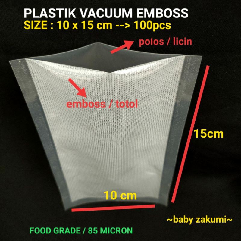 NOTE :tidak bisa retur. BELI = SETUJU.Baca Deskripsi Sebelum Transaksi !!!**HARI MINGGU / TANGGAL MERAH TIDAK ADA PENGIRIMAN****PESANAN TERAKHIR masuk jam 15.00 dikirim hari yang sama****DIATAS JAM 15.00 DIKIRIM HARI BERIKUTNYA****GOSEND DIKIRIM MULAI jam 11.00**- REFILL VACUUM PLASTIC BAG CUT OFF SIZE: 10 X 15 CM- PLASTIK UNTUK MESIN VACUM SEALER FRESHPACK - FOOD GREAD - KETEBALAN 85 MICRON- Harga Tertera untuk 1 Pack = 100 Lembar- PLASTIK KHUSUS BERTOTOL TOTOL( EMBOSS) DI SATU BAGIAN, BAGIAN LAIN NYA P