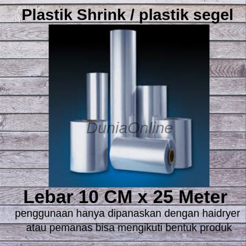 Eceran Plastik Segel/ Shrink / rapping Film (tanpa rol)Lebar 10 cm x Panjang 25 meterPemakaian cukup mudah tinggal potong sesuai ukuran masukkan ke bidangnya/produknya lalu dipanasi* INGAT ini ukuran lebar plastik (bukan diameter)* Cara Ukurnya adalah keliling dibagi 2* INGAT ini kita jual panjang langsung 25 meter, jadi anda potong sendiri sesuai kebutuhan* Pemakain cukup mudah, bisa dipanasi pakai uap air, air panas, Hair Dryer (pilih yg paling panas), Hot Gun / Hea