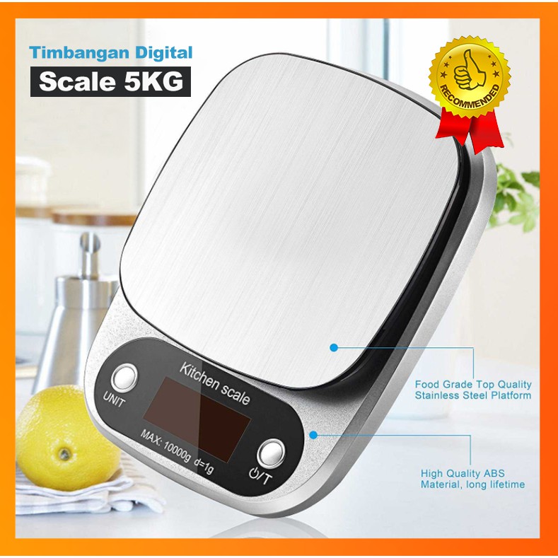 Deskripsi Timbangan Dapur Digital 10kg Kitchen Scale premium qualityDeskripsi Timbangan Dapur Digital 10kg Kitchen Scale premium qualityFree Bubble Wrap & Garansi 30 Hari (RUSAK = TUKAR BARU).Timbangan Digital Dapur Kapasitas 10KG Dengan Akurasi 1GR.Warna: Body Silver, Platform Hitam (PLASTIK BIRU BISA DILEPAS).Menggunakan 3x Baterai AAA. Display lebih terang dan build quality terbaik.Waspada banyak produk serupa dengan kualitas yang sangat buruk.Produk kami sudah dites menggunakan anak timbangan F1, AKURAT.Spesifikasi:- Dimensi produk: 21 x 15.5 x 3cm- Platform Timbangan: 14.9 x 14.8cm- Layar LCD dengan Backlight, Ukuran Huruf Besar- Satuan Pengukuran: Gr - LB - Oz - Ml - Fl.Oz- Berat Maksimal: 10000 Gr- Berat Minimum: 3 Gr- Akurasi / Sensitivitas: 1 Gr- Bahan: Plastik ABS - Platform Stainless- Auto Off & Tare Function (BISA DI NOL KAN)Isi Paket:- 1x Timbangan Digital Dapur 10Kg / 1Gr- 3x Baterai AAA- 1x Manual
