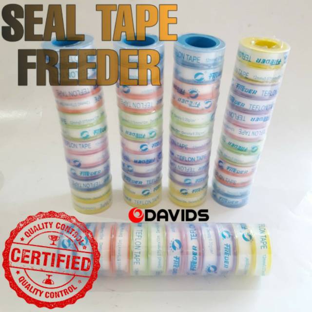 Sealtape FrederSpesifikasi :Brand : FrederSize : 12mm x 0.075mm x 10mKerapatan : 0.20g/cm3Sealtape dengan merk Freder sangat terkenal kualitasnya.Sealtape ini banyak digunakan di proyek2 pengairan baik pemerintah maupun sw